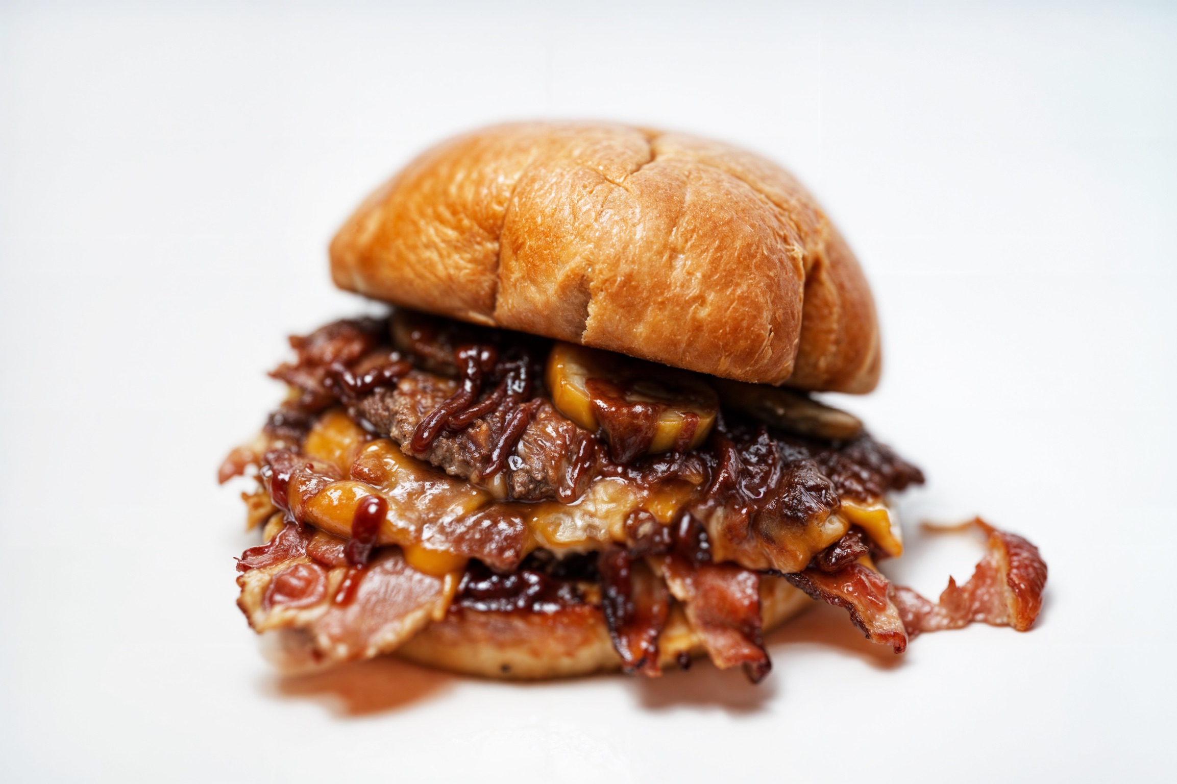 Buns potato, steak smash, cheddar, bacon, oignons frit, pickle, sauce BBQ